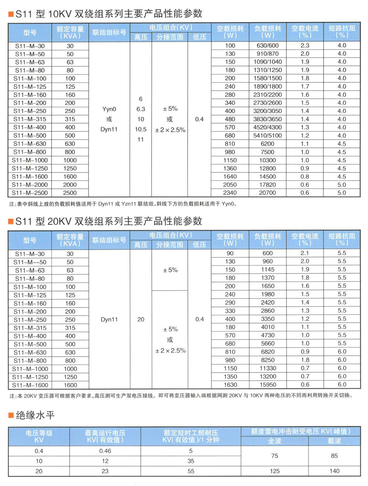 產(chǎn)品概述 本公司研發(fā)生產(chǎn)的S11-M系列全密封油浸式電力變壓器具有低損耗、低噪音、高效率的優(yōu)點(diǎn),可取得良好的節(jié)能效果并減少污染。全密封式變壓器與普通油浸式變壓器相比,取消了儲(chǔ)油柜,油體積的變化由波紋油箱的波紋片的彈性來自動(dòng)調(diào)節(jié)補(bǔ)償,變壓器與空氣隔絕,防止和減緩油的劣化和絕緣老化,增強(qiáng)運(yùn)行可靠性,正常運(yùn)行免維護(hù)。 產(chǎn)品特點(diǎn) 1.變壓器鐵芯采用進(jìn)口優(yōu)質(zhì)冷軋硅鋼片疊積而成,大大降低空載損耗和空載電流,并對(duì)鐵芯進(jìn)行綁扎,保證鐵芯的緊實(shí)度,降低噪音。 2.高低壓繞組用無氧銅繞制,低壓繞組500kVA及以下采用雙層圓筒式結(jié)構(gòu),630kVA及以,上采用雙螺旋或四螺旋結(jié)構(gòu),高壓繞組采用多層圓筒式結(jié)構(gòu)。 3.變壓器聯(lián)結(jié)組采用Dynll,減少諧波對(duì)電網(wǎng)的影響,改善供電質(zhì)量。 4.變壓器為全密封結(jié)構(gòu),延長使用壽命,免吊心,免維修。5.實(shí)測(cè)噪音值低于標(biāo)準(zhǔn)。 本系列變壓器經(jīng)正常運(yùn)輸后,不需作吊心檢查,即可安裝有關(guān)的零部件,進(jìn)行驗(yàn)收項(xiàng)目試驗(yàn),合格后即可投入運(yùn)行。 使用條件 1.最高環(huán)境溫度:+40°C 2.最低環(huán)境溫度:- 25°C 3. 海拔高度:<1000m 4.最高月平均相對(duì)濕度: 90%(20°C) 5. 安葬地點(diǎn):安裝在沒有火災(zāi)、爆炸危險(xiǎn)、嚴(yán)重污穢、化學(xué)腐蝕及劇烈振動(dòng)的場(chǎng)所,戶內(nèi)或戶外。 執(zhí)行標(biāo)準(zhǔn) GB 1094.1 電力變壓器 GB/T15164油浸式電力變壓器負(fù)載導(dǎo)則 GB/ T 6451三相油浸式電力變壓器負(fù)載導(dǎo)則GB 2536變壓器油 JB/ T3837變壓器類產(chǎn)品型號(hào)編制方法JB/T501電力變壓器試驗(yàn)導(dǎo)則 GBI094.3電力變壓器絕緣水平和絕緣試驗(yàn)外絕緣的空氣間隙 DL/T572變壓器運(yùn)行規(guī)程 上述標(biāo)準(zhǔn)以最新發(fā)布的為準(zhǔn),設(shè)備的其它要求應(yīng)以相應(yīng)的最新的國家或?qū)I(yè)標(biāo)準(zhǔn)為準(zhǔn)。